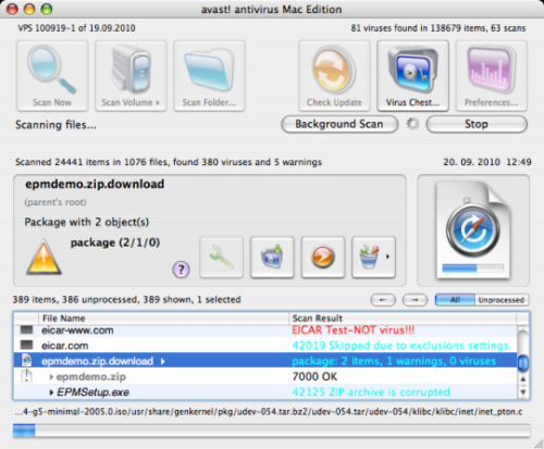 Utilizza lo stesso sistema di scansione conosciuto per l’ambiente Windows. Punto di forza di questa applicazione sono i costanti aggiornamenti relativi alle definizioni dei malware che consentono una protezione in tempo reale e scansione delle email. A queste proprietà si contrappongono una scarsa personalizzazione ed una performance nella scansione non proprio di altissima qualità.